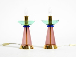 Twee zeldzame Italiaanse tafellampen uit de jaren 80 van Murano-glas in een postmodern Memphis-design | Vetri MuranoTwee zeldzame Italiaanse tafellampen uit de jaren 80 van Murano-glas in een postmodern Memphis-design | Vetri Murano
