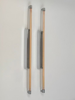 Een paar vintage XL wandlampen, verchroomd metaal en transparant ABS, Italië, 1980