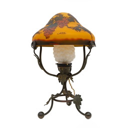 Émile Gallé Art Nouveau Cameo Bol Glas en Brons Tafellamp, Frankrijk 1900
