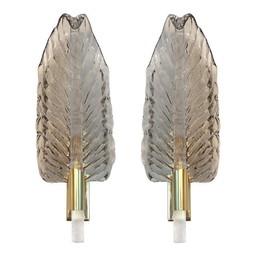 Set van twee wandlampen Mid Century Modern Grijs blad Murano glasSet van twee wandlampen Mid Century Modern Grijs blad Murano glas