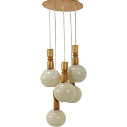 Vintage verstelbare kroonluchter van hout en kunststof van Pokrok Žilina, Tsjecho-Slowakije 1970