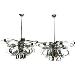 Paar vintage chromen kroonluchters, Italië 1970
