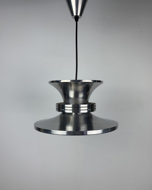 Danish Space Age UFO Brushed Aluminum Pendant Lamp Sputnik design Mid Century Modern 70s Industrial Minimalist 1970s Denmark