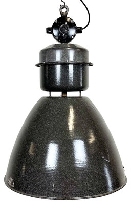 Grote donkergrijze geëmailleerde industriële fabriekslamp van Elektrosvit, jaren 60