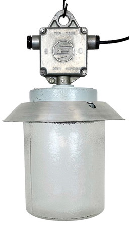Grey Cast Aluminium Explosion Proof Lamp with Enameled Shade, 1970s