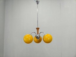 Bauhaus kroonluchter met gekleurde glazen bollen, Tsjecho-Slowakije, jaren 1930