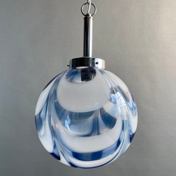 Hanglamp van Murano geblazen glas in blauw en wit, jaren 1970 Space Age Design.
