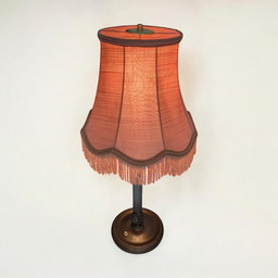 Vintage tafellamp Mid Century, roze kap met franjes en fijn brokaat, jaren 60/70Vintage tafellamp Mid Century, roze kap met franjes en fijn brokaat, jaren 60/70