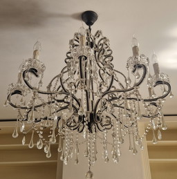 Vintage mid century kroonluchter met 3 kristalglazen lampen