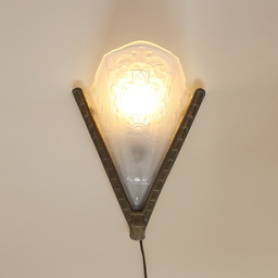Franse Art Deco wandarmatuur met matte, geperst glazen kap, jaren 1920