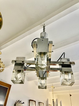 Vintage 60S kroonluchter in glas en plastic Italiaans ontwerpVintage 60S kroonluchter in glas en plastic Italiaans ontwerp