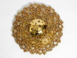 Prachtige grote messing Palwa plafond- of wandlamp uit 1970 met gefacetteerde kristallen stenen