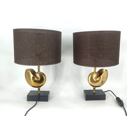 Vintage messing Nautilus Schelp tafellampen 1970'S - Frankrijk - Set van 2