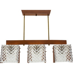 Vintage plafondlamp van teakhout en kristal, 1960Vintage plafondlamp van teakhout en kristal, 1960