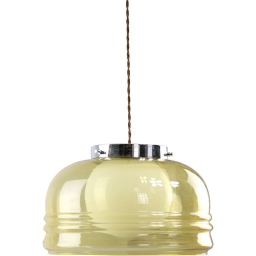 Vintage hanglamp van chroom en glas, Italië 1970Vintage hanglamp van chroom en glas, Italië 1970