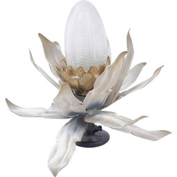 Vintage Art Deco tafellamp van glas en gebloemd keramiek, Italië 1920
