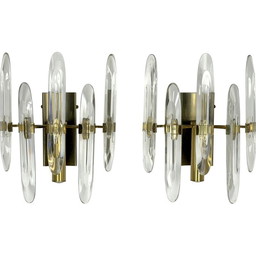 Paar vintage wandlampen van glas en verguld messing van Sciolari, Italië 1970