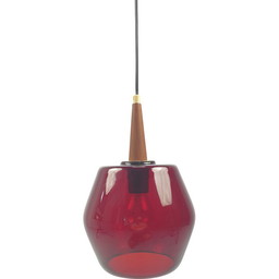 Vintage hanglamp van glas en teakhout, Nederland 1970