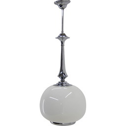Vintage Art Deco hanger van geblazen glas en chroom, 1940Vintage Art Deco hanger van geblazen glas en chroom, 1940