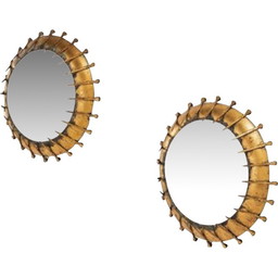 Paar vintage messing wandlampen met papil decor, 1940-1950