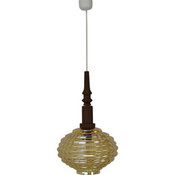 Vintage hanglamp van glas en hout, Tsjecho-Slowakije 1960