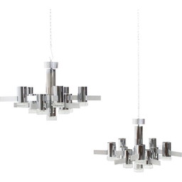 Paar vintage chroomstalen kroonluchters van Gaetano Sciolari, 1970
