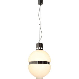 Vintage wit glazen en chromen metalen hanglamp, Italië 1960