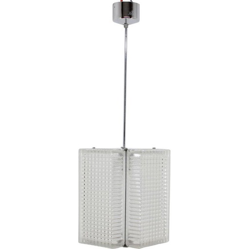 Paar vintage hangers van chroom en glas, Tsjecho-Slowakije 1960