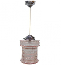 Art deco hanglamp met roze glazen kapArt deco hanglamp met roze glazen kap