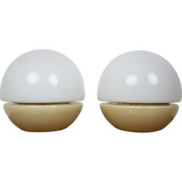 Paar vintage glazen en messing tafellampen, Tsjechië1960Paar vintage glazen en messing tafellampen, Tsjechië1960