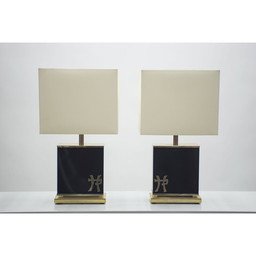 Paar vintage tafellampen van glas en kunststof 1980Paar vintage tafellampen van glas en kunststof 1980