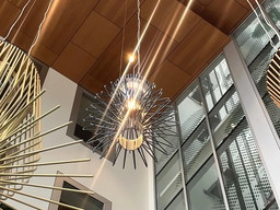 Hang je design lamp voor een spiegel. Een oude, bekende interieur truc die het nog altijd goed doet. Door de design verlichting namelijk voor de spiegel te hangen, weerkaatst het licht wat de kamer gelijk een maatje groter maakt.