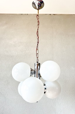 Gaetano Sciolari kroonluchter van vintage glas en chroom