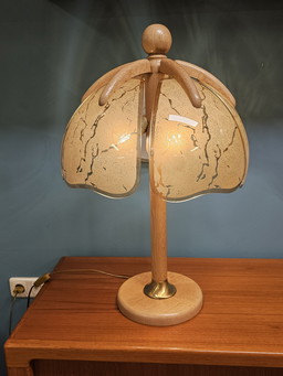 Vintage Tafellamp Lamp Bureaulamp Hout Glas Messing
