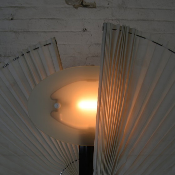 The Butterfly floor lamp, designed by Afra & Tobia Scarpa for Flos in 1980, is a beautiful example of vintage design. With its unique shape and elegant appearance, this lamp adds a touch of class to any room. The lamp combines metal and textile elements for a refined look. Perfect for lovers of design classics.