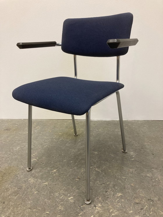 Discover the timeless elegance of the Gispen 1235 chair, an iconic piece that embodies the essence of Mid-Century Modern design. This chair combines a refined silver metal frame with comfortable blue textile upholstery, making it both stylish and functional. Perfect for both modern and classic interiors, this chair adds a touch of refinement to any space. Contact us today for more information or to make a purchase.