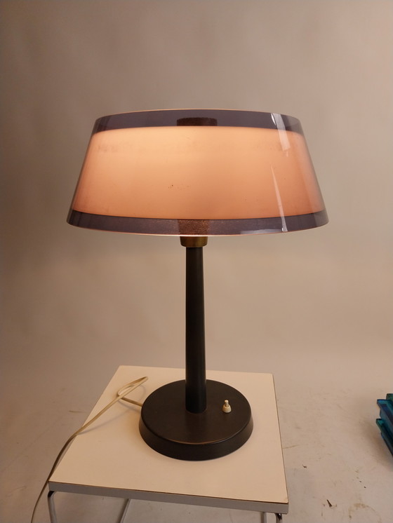 This table lamp, designed by Yki Nummi for Stockmann-Orno in 1957, is a beautiful example of Mid-Century Modern design. With its elegant lines and refined finish, this lamp adds a touch of timeless style to any room.