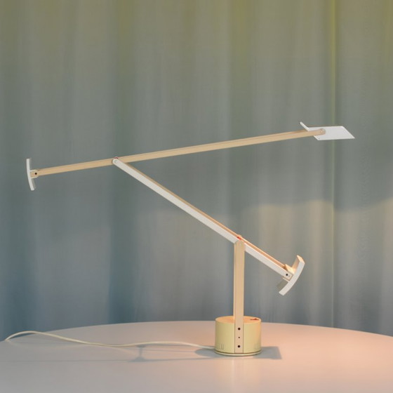The Tizio 35 desk lamp, designed by Richard Sapper for Artemide in 1972, is an iconic piece that combines functionality and style. With its adjustable arms and minimalist design, this lamp is a perfect addition to any modern workspace. Crafted from metal, it has an elegant cream finish.