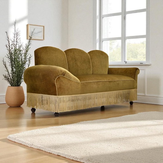 ConditionVery goodColorsGreen, BrownMaterialWood, VelvetNumber of items1Height93 cmWidth185 cmDepth74 cmSeat height45 cm