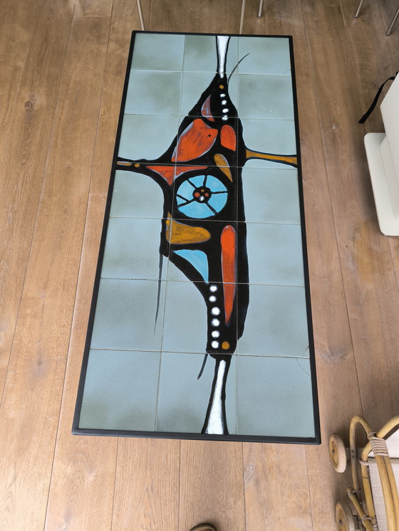 Discover the charm of the 1960s with this unique coffee table. The tabletop, decorated with colorful ceramic tiles, captures the essence of Mid-Century Modern style. The metal base provides a sturdy foundation and adds a touch of elegance.