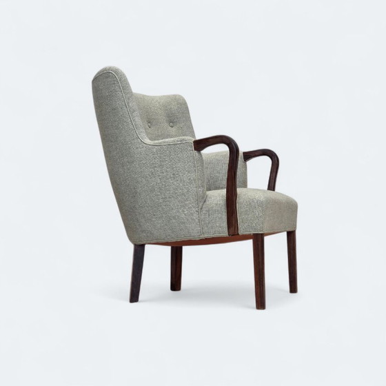 1960s, Danish armchair. Original light grey furniture wool, solid teak wood, springs in the seat. Original very good condition: no smells, no stains and stable construction. Manufactured by Danish furniture maker in about 1960-65s. Original Scandinavian vintage design directly from Denmark. The chair was checked by craftsman.