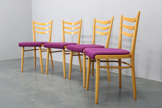 1960s Set of Four Beech Dining Chairs, Czechoslovakia