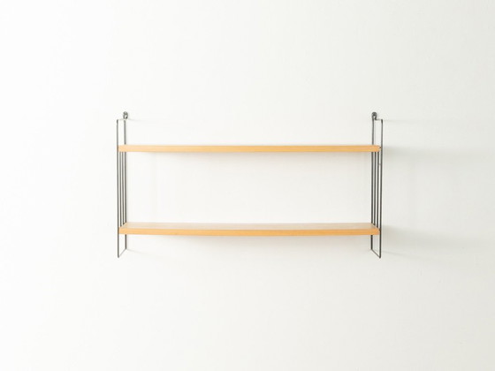 With its characteristic black metal ladders and the flexibly usable shelves, this WHB wall shelf embodies functionality and minimalist aesthetics. The clean lines blend seamlessly into a variety of room concepts. Two light brown ash wood shelves create a warm contrast to the delicate yet sturdy metal frame. Carefully refurbished and preserved in very good vintage condition.