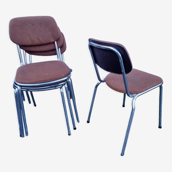 4 chairs dating from the 80s. Metal structure and speckled brown velvet fabric (need cleaning or reupholstering!). I have about twenty available