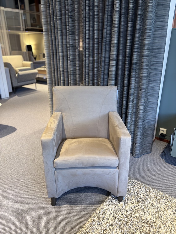 Leolux Armchair Dolcinea of the brand Leolux. Fully upholstered in Tendor Clay 010 fabric, legs epoxy 2500 taupe silk.