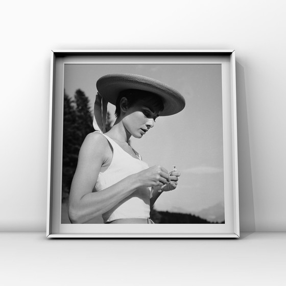 Audrey stayed at the Bürgenstock in the summer of 1954 to recuperate and escape the hustle and bustle of her career. Audrey's serene background and graceful appearance make this print a timeless acquisition for any lover of photography and Hollywood glamour.