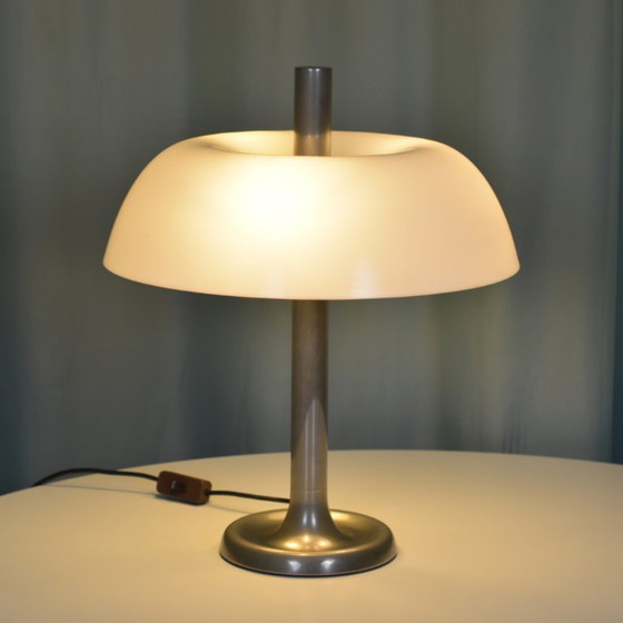 This iconic mushroom table lamp, designed by Heinz FW Stahl and produced by Egon Hillebrand in the 1970s, is a beautiful example of vintage design. With its elegant silver and off-white color palette and high-quality materials like chrome and acrylic, this lamp adds a touch of retro charm to any room. The original EU wiring system without earthing has been retained, adding to the authenticity of this piece.