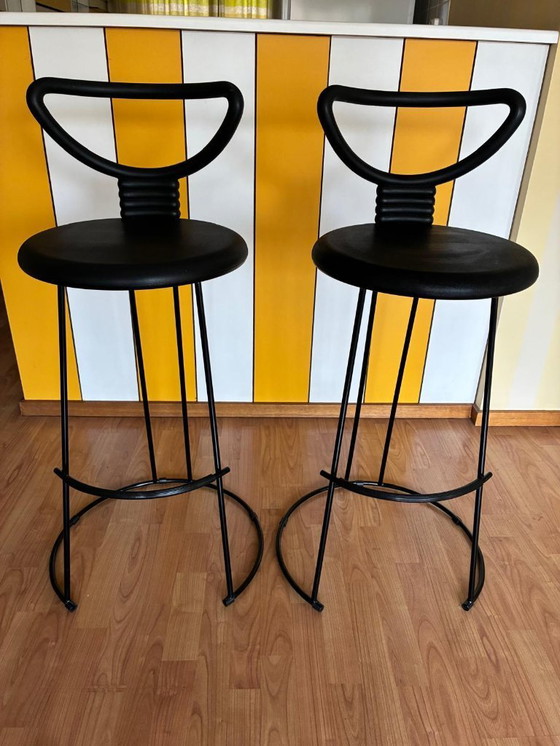 The stools are in excellent condition overall; they are ideal for kitchen islands, bars, lounges, or modern work environments. A true collector's item for lovers of Italian design and a stylish eye-catcher in any interior.