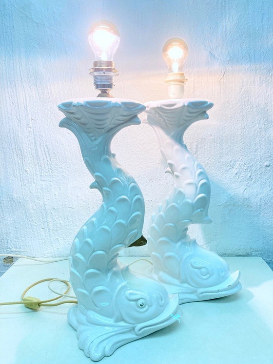2 Italian ceramic table lamps from the 1970s in the shape of fish