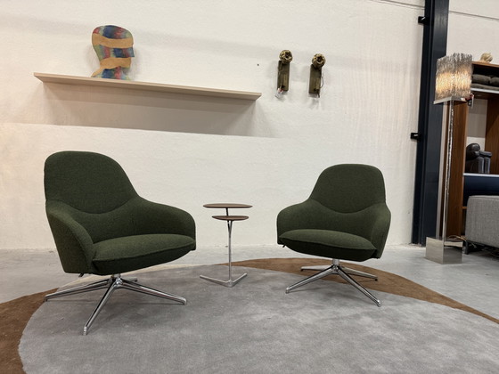 New Leolux Lanah swivel armchairs in Monza fabric in color 55. Aluminum base.